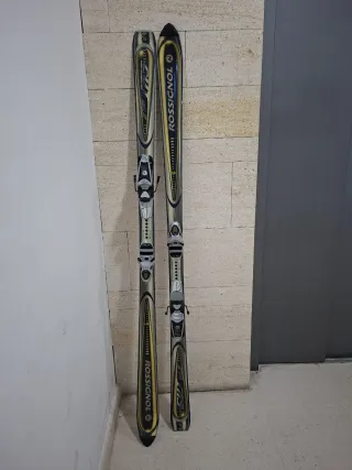 Se vende lote de esquís Salomon con sus bastones. - Esquís con fijaciones. - Bastones de esquí.