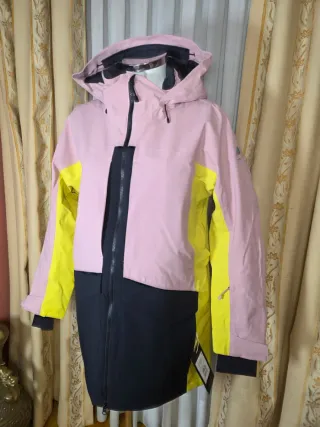Chaqueta de esquí o snowboard de la marca Burton, con un diseño moderno y llamativo. Nuevo sin estrenar con etiqueta, tallas disponibles M-L - Color principal rosa. - Detalles en amarillo vibrante en las mangas. - Paneles inferiores en color negro. - Capucha integrada. - Cremallera frontal central.