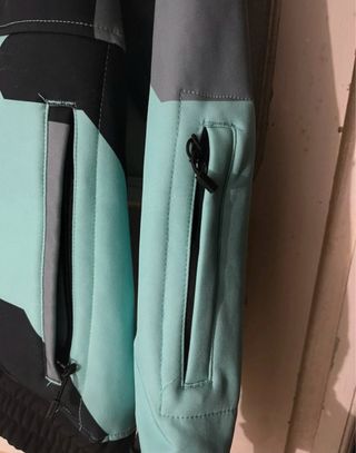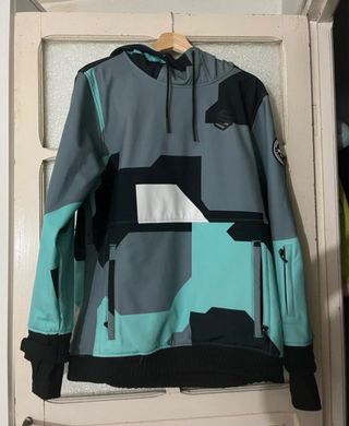Chaqueta de diseño moderno, ideal para deportes de invierno Usada 4 veces TALLA S - Patrón geométrico en tonos grises, negros y turquesa. - Capucha integrada. - Bolsillos frontales y en manga Forfait, laterales con cremallera para ventilación. - Puños ajustables - Capa exterior resistente al agua hasta 10 000 mm de agua - Membrana intermedia de TPU con protección cortavientos - Capa interior de tejido micropolar para retener el calor corporal - Transpirable: índice de transpirabilidad de 10000 g/m2/día - Diseño con cuello alto para una mayor protección contra el viento y el frío - Capucha ajustable con cordones y reguladortrasero