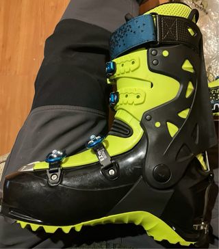 Botas de esquí de montaña Scarpa en color amarillo y rojo. - Cierre con hebillas y correa. - Marca Scarpa visible en el lateral y la suela. - Modelo Matrix. -Talla 8/9 americana, 42 más menos Hay disponible un kit con skis, piel de foca y más cosas en mi perfil