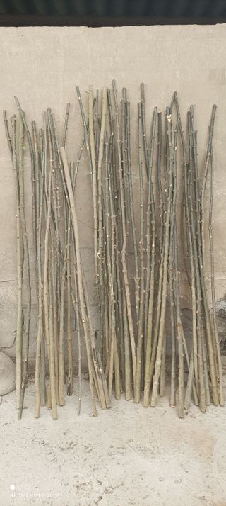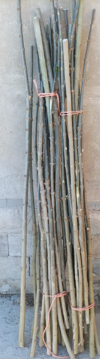 Lote de varas de fresno, ideales para la creación de bastones o para proyectos de senderismo y artesanía. - Material: Fresno. - Longitud: Variada. - Diámetro: Variado. - Cantidad: Lote de varias varas. - están sin secar -Precio 5€ unidad