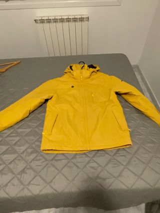 Abrigo amarillo de la marca Izas, modelo Naluns, en talla M. Perfecto para mantenerte abrigado. - Color amarillo vibrante. - Diseño con capucha. - Cierre de cremallera frontal.