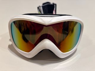 Gafas de esquí diseñadas para niños de hasta 10 años. Son cómodas y ofrecen buena visibilidad. - Montura blanca. - Correa con diseño geométrico multicolor. - Lente espejada.