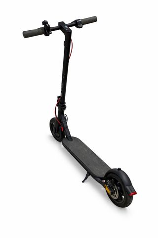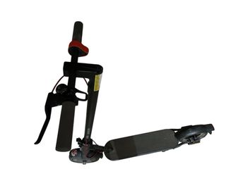 Patinete eléctrico de color negro, ideal para desplazamientos urbanos. Cuenta con un diseño plegable para facilitar su transporte y almacenamiento. - Manillar con puños de goma. - Freno delantero y trasero. - Plataforma antideslizante.