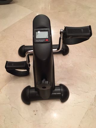 Pedaleador estático, ideal para personas mayores o para rehabilitación. - Pantalla digital que muestra tiempo, distancia y conteo. - Ajuste de resistencia. - Diseño compacto y portátil.