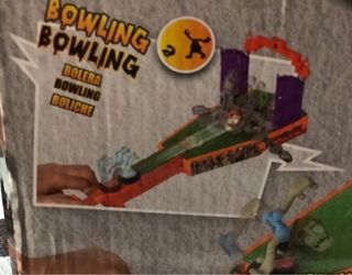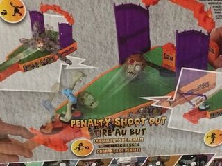 Juego de mesa World of Zombies Penalty Shoot Out. - Incluye figuras de zombies y lanzador. - Pista de juego temática. Son tres juegos en uno: Bolera, lanzamiento de penalti y golf. Solo falta la cabeza de un muñeco.
