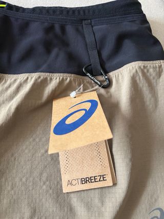 Pantalón corto de trail running de la marca Asics. - Color beige y negro. - Tejido ligero y transpirable. - Cintura elástica. - Logo de Asics en la pernera. - Nuevo con etiquetas - Talla L