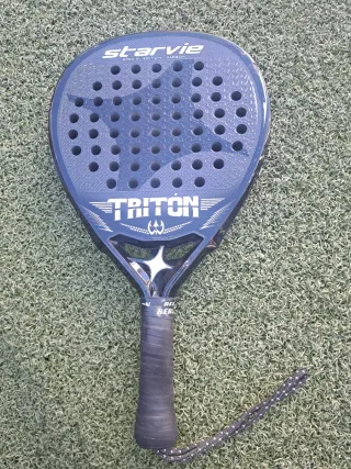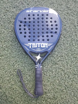Pala de pádel StarVie Triton en color negra, miy bonita estéticamente, muy buena salida de bola Tiene algunos detalles, pero ninguna rotura, roces, se puede comprobar por la vendo en mano Acepto cambio por algo que me interese tambien - Marco de carbono. - Superficie de carbono.