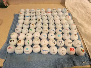 Lote de bolas de golf 81 unidades, con diferentes logos y diseños. Son ideales para coleccionistas o para jugar. - Variedad de marcas y logotipos. - Bolas de golf blancas. Sin marcas de haber sido jugadas.