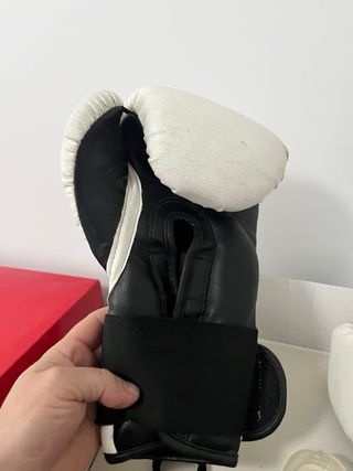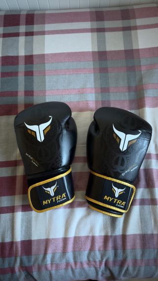 Par de guantes de boxeo negros. Están bien, lo único que tienen un pequeño agujero. No los recomendaría para sparring pero para el saco o hacer manoplas están bien. Los vendo porque me lesioné y no puedo entrenar más.