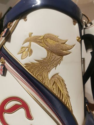 Bolsa de golf Callaway de edición limitada con un diseño llamativo. - Compartimentos interiores. - Detalles en azul y rojo. - Bandera del Reino Unido en el lateral. 2014 limited addition golf bag Liverpool