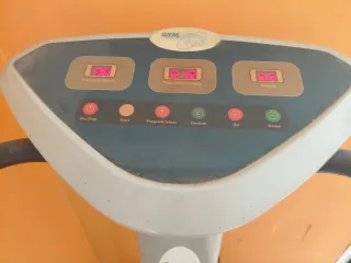 Máquina de ejercicios vibratoria Gym Vibra MAX. - Panel de control con pantalla digital. - Botones de encendido/parada, inicio, selección de programa, confirmar, subir y bajar. - Indicadores para selección de programa, tiempo/IMC y velocidad.