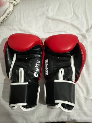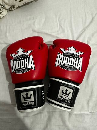 Par de guantes de boxeo de la marca Buddha. - Color rojo. - Peso de 14 oz. - Diseño profesional. - Cierre de velcro. -Segunda mano