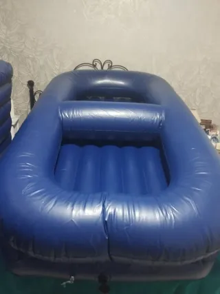 Se venden dos barcas hinchables, una de tamaño familiar y otra más pequeña. Ambas son de color azul y están fabricadas en un material resistente. - Barca familiar. - Barca pequeña. - Color azul.