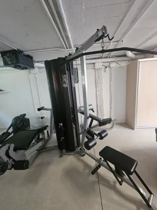 Equipo de gimnasio multiestación Life Fitness para entrenar en casa. Permite realizar una gran variedad de ejercicios. - Estructura robusta y duradera. - Diseño compacto para optimizar el espacio. - Incluye accesorios para diferentes rutinas.