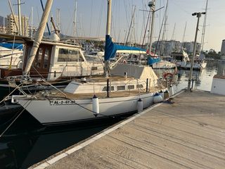 Barco velero blanco con cubierta de madera y detalles en madera. Velero semi nuevo Firlandes de 2 palos totalmente nuevo con A/C, calefacción diesel, tanques de inox nuevos, 500 millas de autonomía, instalación electrónica y cuadros nuevos, grifos de fondos nuevos en Inox. Etc. - Matrícula: 7ª AL-2-67-07 - Cubierta de madera - Cabina con ventanas - Mástil y velas