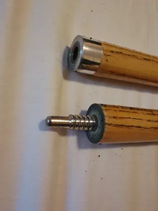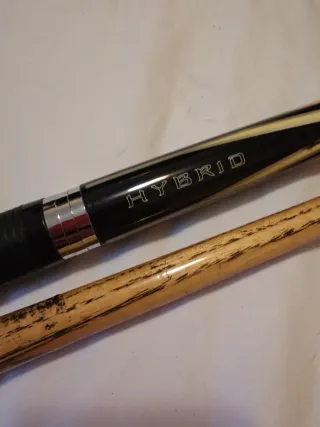taco de billar Snooker de la prestigiosa marca Riley, modelo Hybrid (ARG-31). Ideal para jugadores que buscan un taco de marca reconocida a un precio accesible. Construcción: 2 piezas (fácil transporte). Grip: Empuñadura de goma ergonómica para mayor agarre. Material: Flecha de fresno con veta a la vista. Incluye: Funda de transporte original Riley Hybrid. Estado: Usado. La madera está en buen estado, pero requiere un cambio de suela (tip) y tiene el desgaste normal del uso en la empuñadura. De ahí su precio. Perfecto para iniciarse con un equipo de marca superior a los tacos genéricos de club.