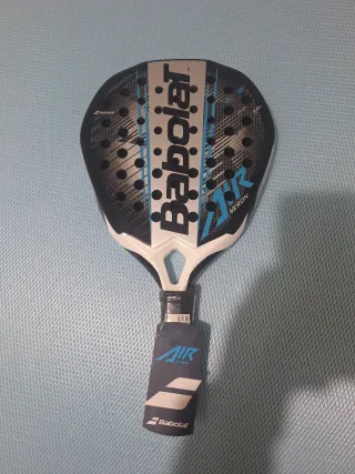 Pala de pádel Babolat con diseño moderno. - Color negro y azul. - Logo de Babolat en el mango. - Recién salida al mercado