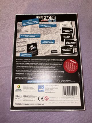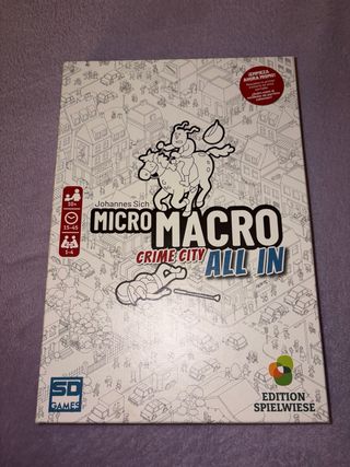 Juego de mesa Micro Macro: Crime City All In. Diseñado por Johannes Sich. - Edad recomendada: 10+ años. - Duración: 15-45 minutos. - Jugadores: 1-4. Español