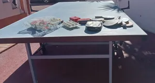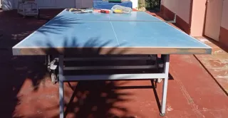 Mesa de ping pong en buen estado, lista para usar. Falta la red, no envío solo recogida - Superficie de juego azul. - Estructura metálica. - Plegable para fácil almacenamiento.