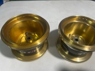 Dos bobinas de pesca Shimano Bulls Eye 9120. - Color dorado. - Diseño X-SHIP. - Modelo A-RB.