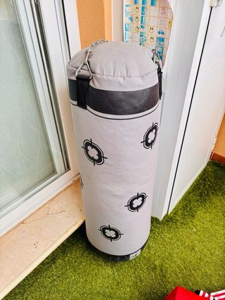 Saco de boxeo de la marca Domyos, ideal para entrenamiento. - Color gris. - Diseño con logo de la marca. - Incluye dianas de entrenamiento.