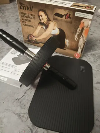 Rodillo para ejercicios abdominales de la marca Crivit. Incluye una esterilla para mayor comodidad. - Rueda con diseño ergonómico. - Mangos antideslizantes. - Esterilla de protección. Un solo uso.