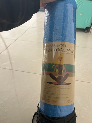 Esterilla enrollable de color azul, ideal para practicar yoga o ejercicios varios en el suelo. Es cómoda y práctca. - Material de espuma. - Textura antideslizante.