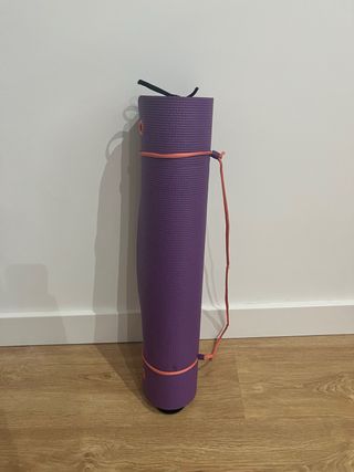 Esterilla de yoga morada a estrenar. Del Decathlon.