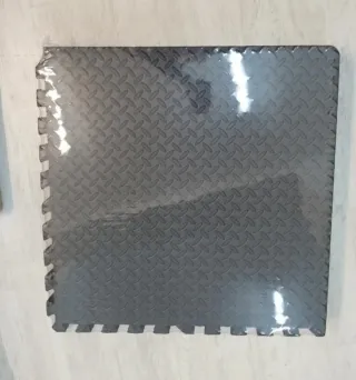 Esterilla de puzzle para suelo, ideal para actividades de fitness o yoga. Protege el suelo y proporciona una superficie cómoda. -Protección Goma Espuma Losas caucho - Diseño entrelazado tipo puzzle. - Textura antideslizante. Se venden un total de 63 piezas de 1,67m2 (32cm x 32cm) y de grosor 1 cm 54 de las que se venden se compraron en enero 2025 y 9 son más antiguas (ver imágenes de la diferencia) Valorado en 108€