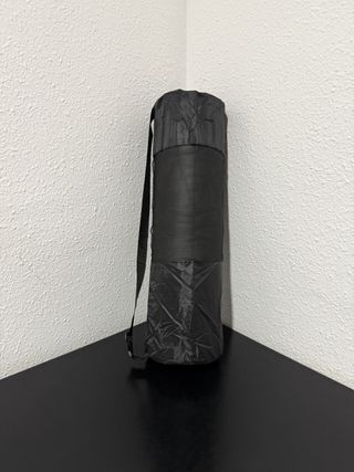 Esterilla de yoga enrollada en una funda. - Funda de transporte negra con cierre de cordón. - Malla transpirable en la parte central de la funda. - Base y parte superior de la funda en material negro.