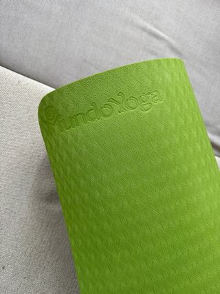 Esterilla de yoga en color verde, con un diseño texturizado. Practicamente sin uso, se ve algo de polvo del guardado