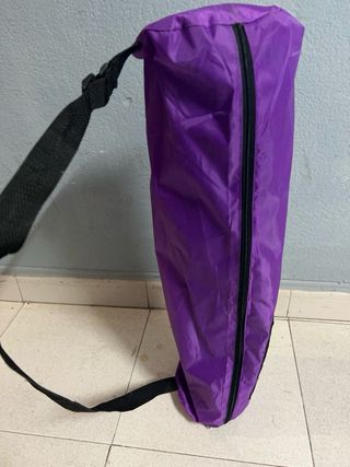 Funda para esterilla de yoga en color gris. Regalo una esterilla nueva Cuenta con cierre de cremallera y correa. - Material resistente. - Correa ajustable. - Bolsillo en la parte superior ideal para llaves, móvil... -Medidas 70x16 - Sólo venta en persona