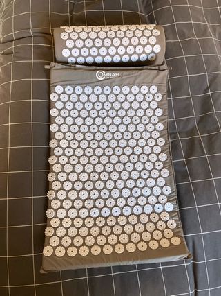 Set de esterilla y almohada de acupresión de la marca Supportiback. Nunca usado, viene con funda. - Color verde lima. - Incluye bolsa de transporte gris. - Marca: Supportiback