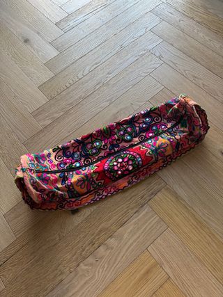 Funda para esterilla de yoga con un diseño vibrante y colorido. - Bordado intrincado con detalles de espejos. - Cierre de cremallera. - Estampado étnico. Made in India. 100% algodón.