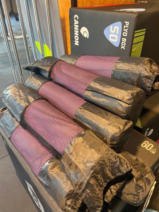 Pack de 18 esterillas de yoga en color lila. Perfectas para gimnasios o clases grupales. - Color: Lila - Cantidad: 18 unidades
