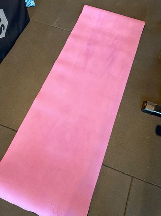 Esterilla de yoga de color rosa de Decathlon ref. 73058. Es nueva, nunca se ha usado Textura con relieve para mayor agarrey fácil de transportar. Med. 161 x 59 x 0.8 cm. Vendo en persona. Se recoge en bcn, Provença con Viladomat.