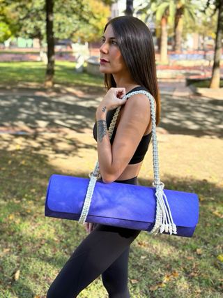Porta esterillas hecho a mano con la tecnica de macrame.