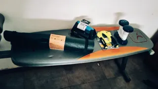 Lote de accesorios para entrenar en casa o al aire libre. - Esterilla enrollable de color verde oscuro a estrenar. - Mancuernas de 2.5 kg a estrenar. - Agarre de mano amarillo a estrenar. - Comba a estrenar. - Tabla de abdominales plegable y regulable en condiciones aceptable. Se vende junto a por separado. Preguntame precios .