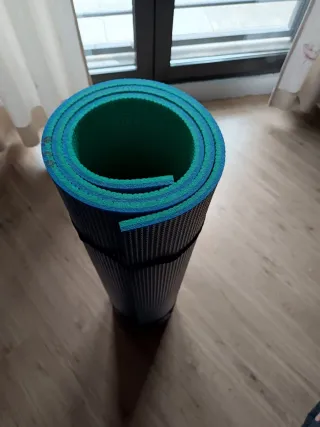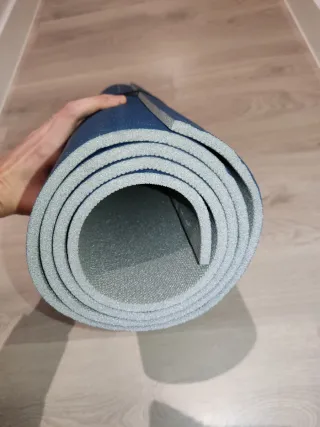 Se venden dos esterillas enrollables, ideales para yoga o pilates. Son de color azul y vienen sujetas con cintas elásticas negras. - Medidas: 160x60. - Grosor aproximado: 8 mm (no es de las delgaditas). - Incluye dos cintas elásticas negras para sujetar. Hago envíos por wallapop