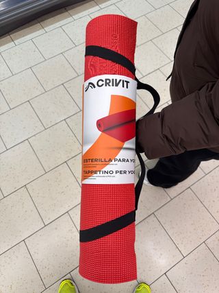 Esterilla de yoga y pilates de la marca Crivit. - Color rojo. - Material de PVC. - Incluye correas de transporte.