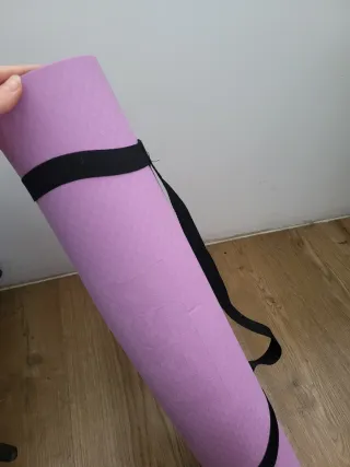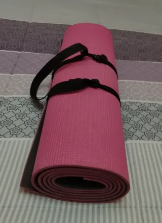Esterilla enrollable para yoga y pilates. Ideal para ejercicios en casa o gimnasio. la he sacado unas 2 veces pero faltó motivación :) - Color negro. - Incluye correas de transporte.