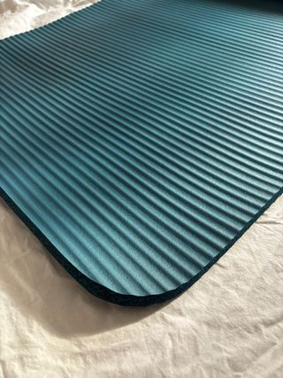 Esterilla de Decathlon para Pilates en color azul. Diseñada con un relieve que proporciona agarre. - Material: Espuma. - Dimensiones: 160 cm x 55 cm. - Grosor: 10mm - Marca: Decathlon.
