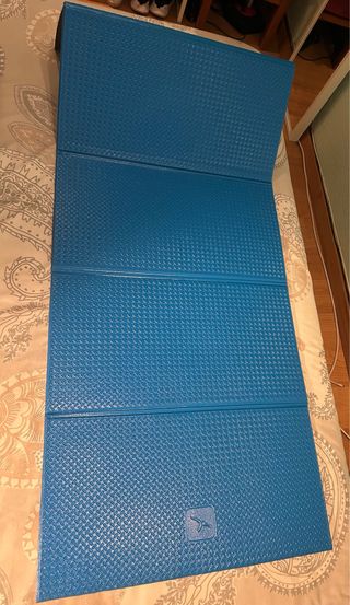 Esterilla de pilates Domyos en color azul. Está NUEVA, sin ningún desperfecto, ya que solo la utilicé una vez. La vendo porque mi profesora de yoga me recomendó otra. - Plegable para facilitar su transporte y almacenamiento. - Grosor de 7 mm para mayor comodidad. - Medidas: 160 cm x 58 cm. Precio nueva 12€