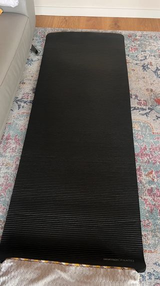 Esterilla de pilates en color negro. Ideal para tus rutinas de ejercicio. - Material resistente y duradero. - Textura antideslizante para mayor seguridad. - Fácil de enrollar y transportar.