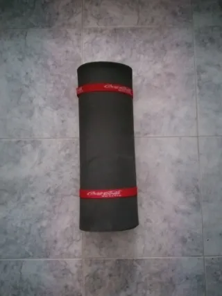 Esterilla enrollable para yoga y pilates, con un diseño moderno y práctico. Ideal para tus sesiones de ejercicio. - Color gris oscuro. - Bandas de sujeción rojas con logo de Coca-Cola. - Multifuncional para entrenamiento. - Peso: 200 gramos. - Largo: 182 cms. - Ancho: 51 cms. - Grosor: 5 mms. - Buen estado. ********************