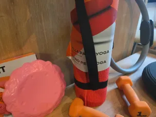 Set de accesorios para yoga o pilates. - Funda de transporte para esterilla Liforme (en perfecto estado,original) - Bloque de espuma. - Cinturón de sujeción beige. - Cinturón de sujeción rosa. - Correa para estetilla rosa - Correa para esterilla gris Kelme. si te interesa algo en concreto,pregúntame y fijamos un precio.