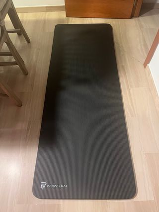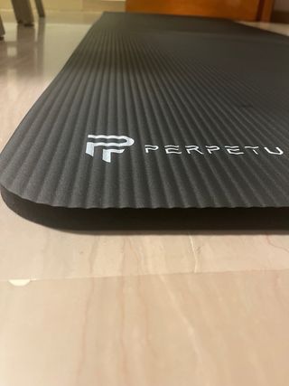 Esterilla de yoga y pilates de la marca PERPETUAL. Diseñada con un acabado texturizado para un mejor agarre. - Color: Negro. - Material: Goma. - Diseño con líneas verticales. Se regala correa ajustable para transportarla. Viene con funda y esta completamente nueva