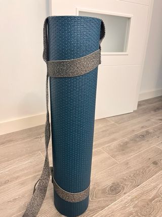 Esterilla de yoga y otros deportes resistente y antideslizante con correa de transporte. Medidas: 183 x 61 x 0,6 cm (largo x ancho x grosor) Esterilla de 6 mm y un peso de 700 gr aprox. Adecuada para pilates, hiit, yoga, gimnasia y otros deportes. Poco uso, muy cuidada. Menos de un mes de uso y siempre usada sobre suelo recién fregado y nunca se ha pisado con calzado, solo calcetines. La vendo por no usarla y por motivo de mudanza. Tiene marcas normales de uso y una pequeña marca que ya venía cuando la compré, creo que debido a la empresa de mensajería, pero es muy pequeña y no afecta para nada a su uso. Ver últimas fotos.