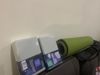 Set de esterilla y dos bloques para pilates. Ideal para tus rutinas de ejercicio. - Esterilla enrollable. - Dos bloques de soporte.